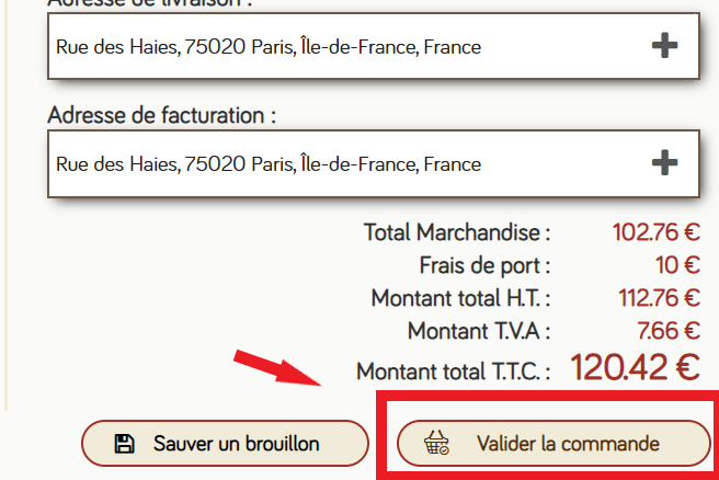- Pour finaliser votre commande, cliquez sur «récap» puis sur «valider la commande» :